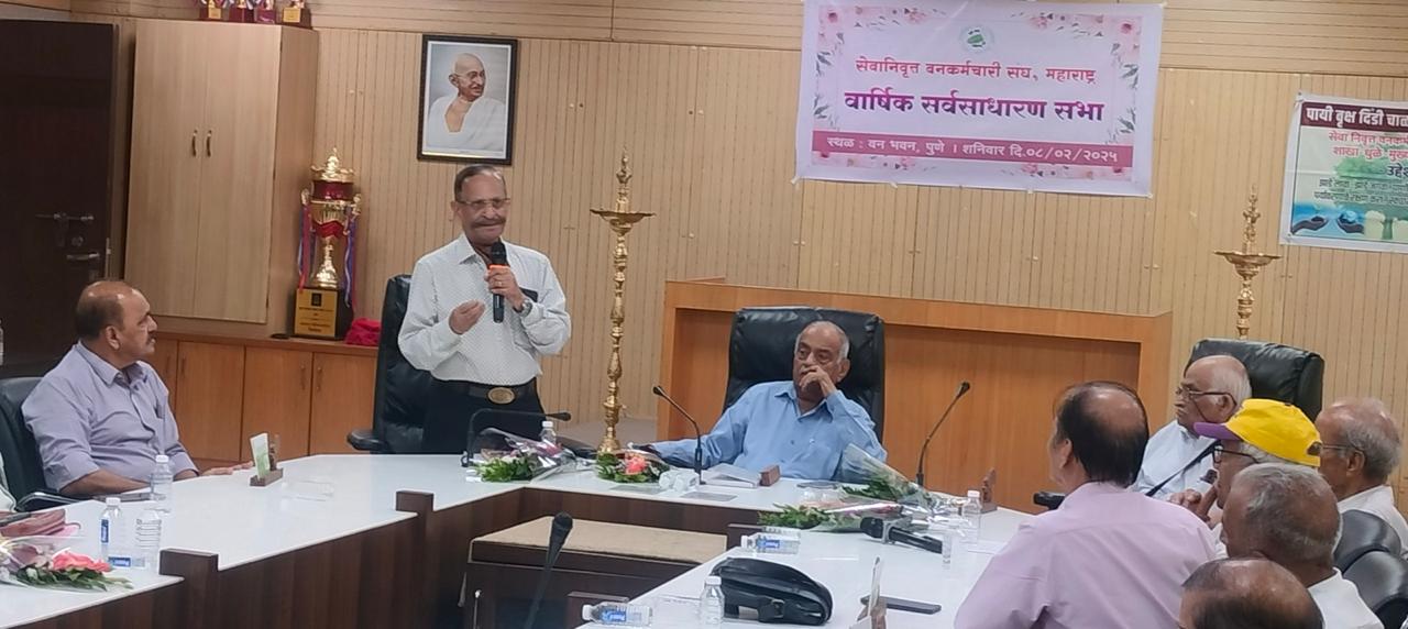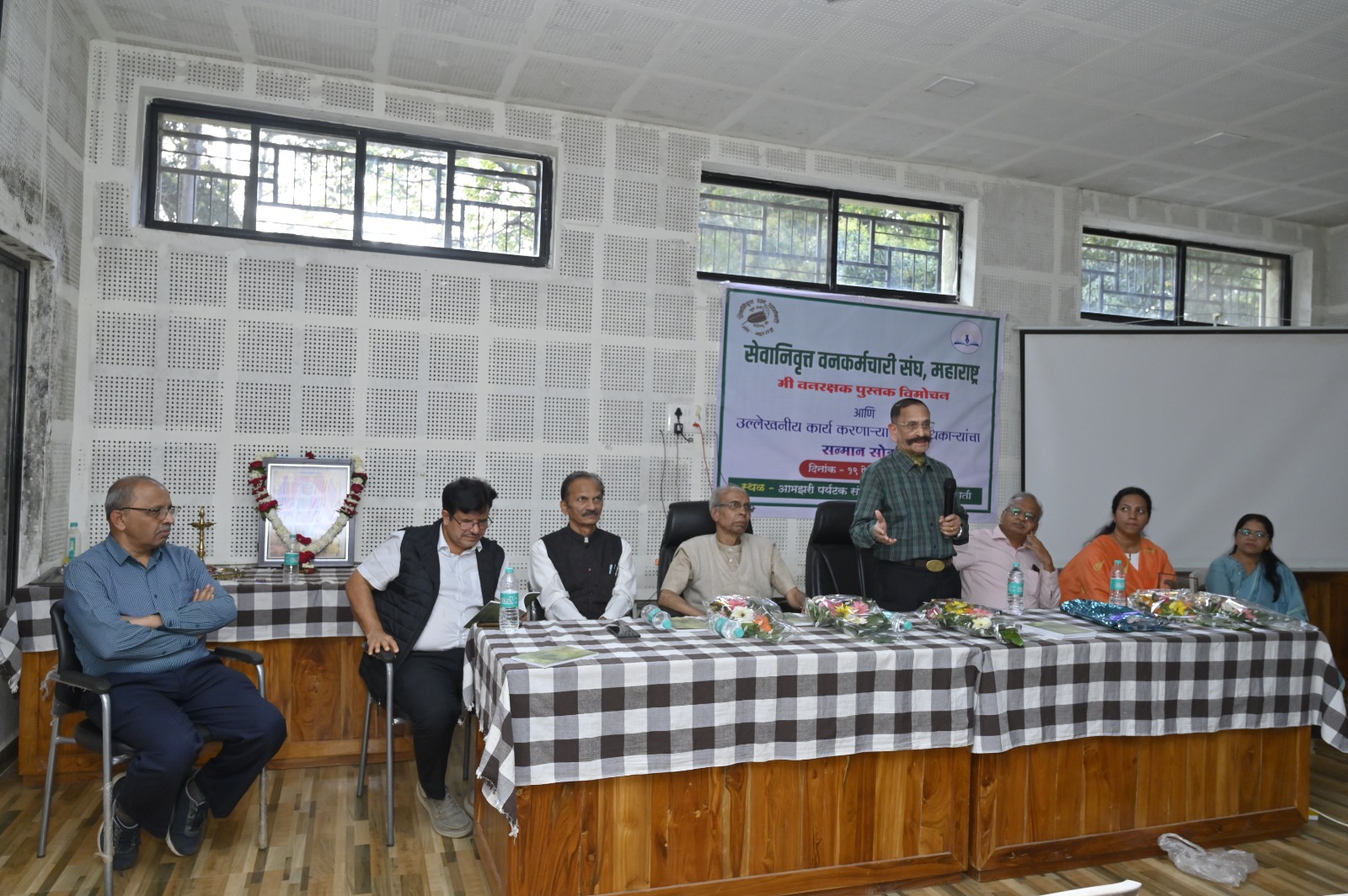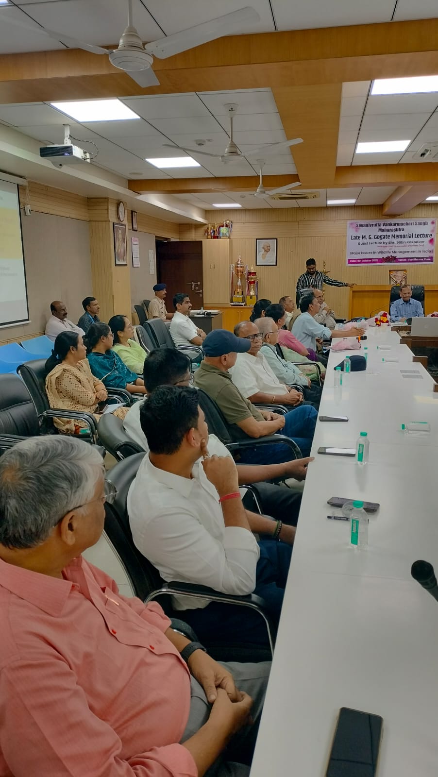 SEVAK SANGH, Maharashtra organised the annual feature of Late M. G. Gogate Memorial Lecture on 27 September 2024 at Van Bhavan, Pune. Shri M. H. Khedkar PCCF Maharashtra State ( Rtd ) was the Speaker on this occasion. The topic was ‘ Gregarious Flowering of Bamboo – Management Concerns …….Chandrapur Story ‘. Shri Khedkar who as the Conservator of Forests of undivided Chandrapur Circle dealt with this challenge with aplomb in 1983-84. Under his leadership the humongous task of extracting lakhs of tonnes of dried bamboo from the forests was accomplished without any untoward incident. In the process, 120 metric tonne of bamboo seed was also collected and supplied to Forest Departments of various States, besides using it for aerial seed sowing. Many senior retired Forest Officers and serving officers graced the event.